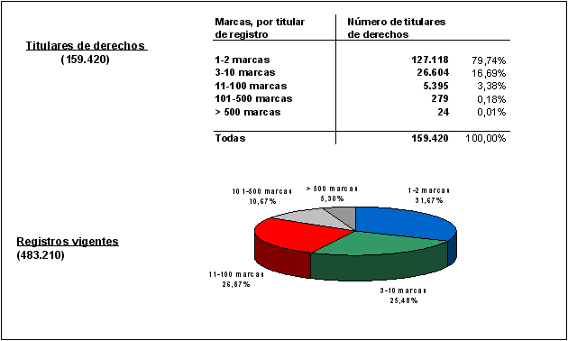 A finales de 2007 había 483.210 registros internacionales de marca válidos inscritos en el Registro Internacional , con cerca de 5.400.000 designaciones activas, y que pertenecían a unos 159.420 titulares de registros (muchos de ellos pequeñas y medianas empresas (Pymes)). A lo largo de 2007 se renovaron 17.478 registros por un período de protección adicional de 10 años (es decir, cerca del 46% del número total de registros internacionales cuya protección finalizaba en el año 2007).
