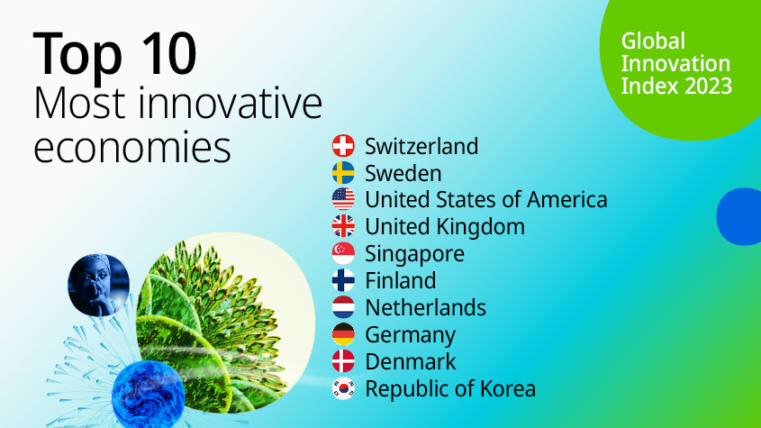 2023年,瑞士连续第13年成为最具创新力的经济体,其次是瑞典、美利坚合众国、联合王国和新加坡。了解其他经济体在2023年全球创新指数排名中的表现。