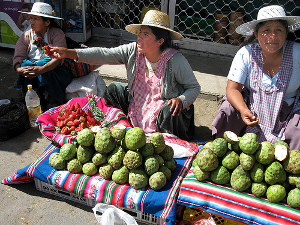 The growers in the Cumbe valley have marketed their chirimoya under the “Chirimoya Cumbe” name since registering the collective mark in 1997 (renewing it in 2007). Primarily sold locally, 99% of the “Chirimoya Cumbe” produced are destined for the domestic Peruvian market. Of the 1% that is internationally marketed, most are sold in Europe, North America and Japan. Some growers have also increased the range of products sold, making things such as “Chirimoya Cumbe” jam, ice cream and cakes. Many regional supermarkets have also requested “Chirimoya Cumbe” to be supplied directly from the growers.