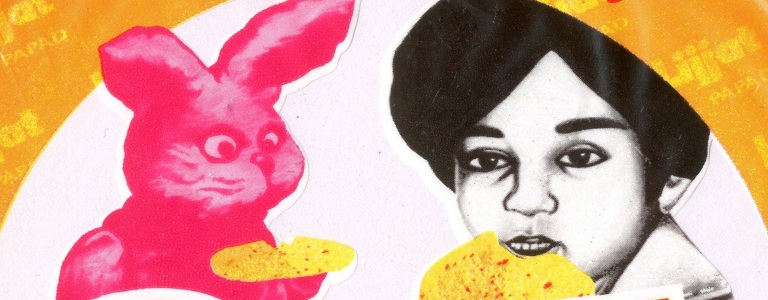 Two characters have appeared on the cooperative’s product jackets: the image (in black and white) of a young child called “Babla” – a boy who is always shown eating papad; and an image (in pink) of a bunny rabbit, also seen with papad in hand. Both Babla and the pink rabbit have become iconic images of the Lijjat brand – the rabbit featured in a well-known TV campaign for the organization that was first aired in the 1980s.