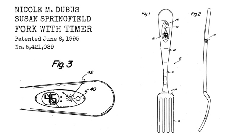 吃得更慢是您的新年决心之一吗?尼科尔·M·迪比和苏珊·斯普林菲尔德在1995年为这种“带计时器的叉子”申请了专利。经过一段时间后,叉子会给使用者一个提示,可以用叉子再吃一口食物。享受美食吧——慢慢来!