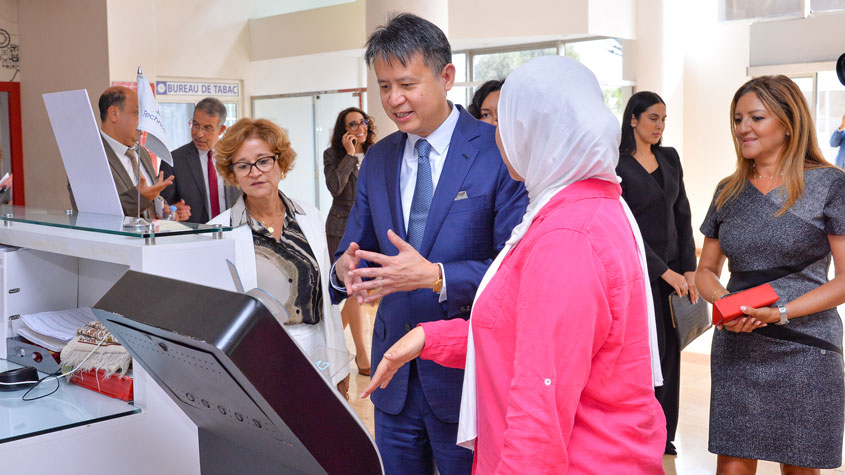 Mr. Tang visited the Casablanca Technopark, where he met Lamiae Benmakhlouf, General Manager of the Moroccan Information Technopark Company, who spoke about the role of technology parks in Morocco's entrepreneurial journey. The Director General also had an opportunity to engage with startups present at the park, and to find out more about their work.