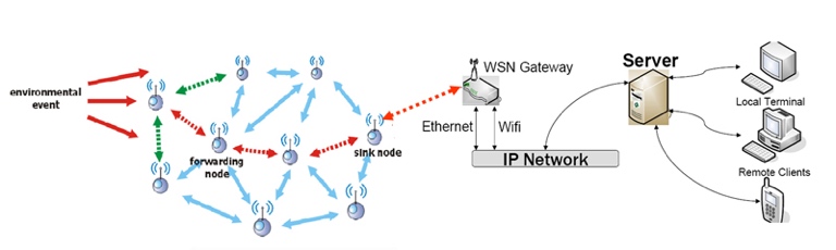 After deciding on USN and the necessary technical criteria, the researchers surveyed the demands of companies and organizations to determine how to best develop a USN technology specifically for monitoring the environment. The first task was to research core USN technology that is already in place for environment monitoring and disaster prevention and determine its viability. Networks are of no use without the ability to communicate, and therefore an effective communication protocol (digital message formats and the rules for their exchange) is essential. At the time research started, the main USN communications protocol was Zigbee, which enhances the IEEE 802.15.4 standard (a standard which focuses on low-speed wireless communication) by adding additional network and security layers and an application framework for low power networking of data.