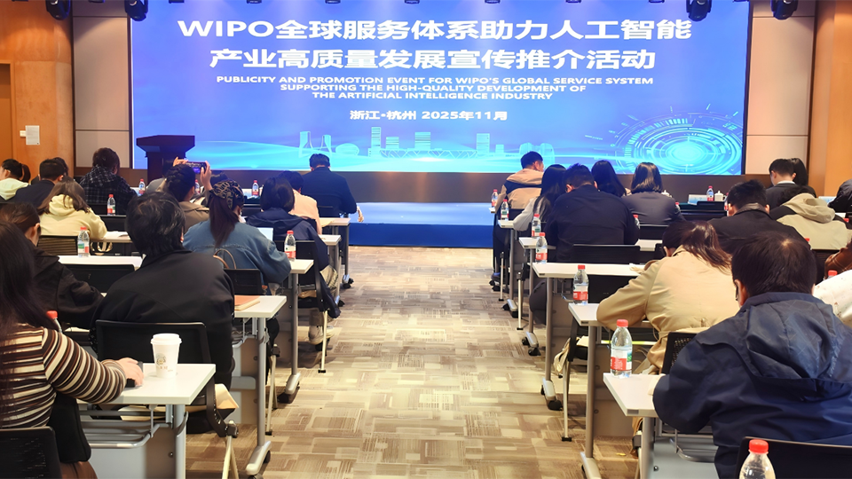 On November 7 and 10, WIPO and Zhejiang IP Office co-organized the “Promotional Events on WIPO’s Global IP Services in Support of High-quality Development of AI Companies” in Shaoxing and Hangzhou, Zhejiang Province. Mr. Chen Hongbing gave opening remarks. Business Manager Fabio Scappaticci of Madrid Operations Division, Team Head Cecile Chatel of PCT Operations Division, and invited expert Lv Guoliang delivered presentations on how to help companies go abroad through WIPO’s Madrid, PCT and Hague Systems. Over 200 representatives from Zhejiang IP Research and Service Center, and enterprises in Shaoxing and Hangzhou participated in the events.