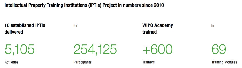 This year’s report also features in more detail the impact being achieved by the WIPO National IP Training Institutions (IPTI). Since their establishment, the IPTIs have delivered more than 5,000 training activities for over 250,000 participants. In 2020 alone, they organized over 850 training activities for almost 70,000 participants. The majority of participants were from the private sector.