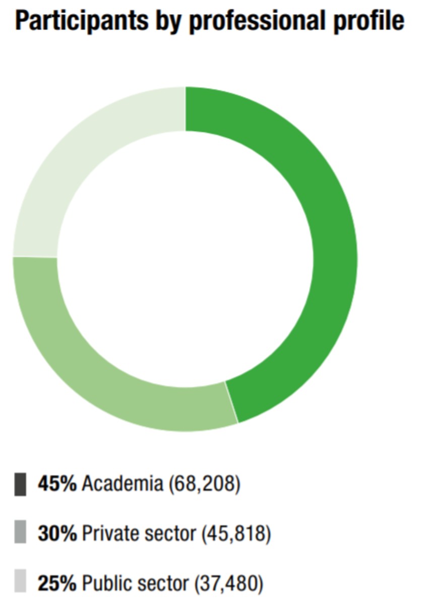 The majority of participants in the Academy’s programs are from academia (45 percent) and the private sector (30 percent), compared to government officials who represented 25 percent of participants in 2020.