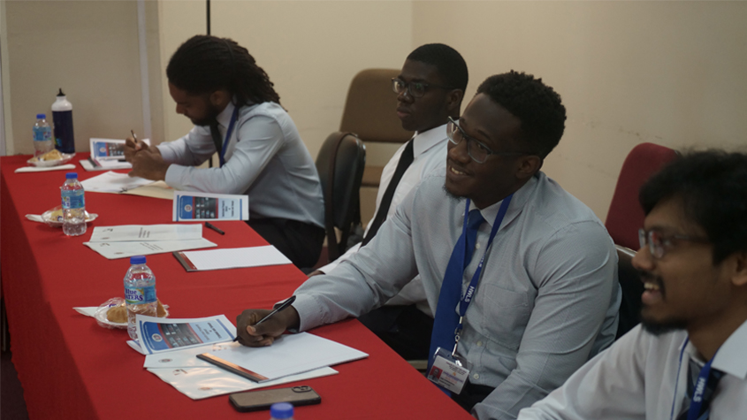(Left) Participants on the first day of the training course on the principles and practice of IP administration for Hugh Wooding Law School, organized by the National IP Training Center in Trinidad and Tobago. (Right) WIPO certified trainers of the National IP Academy of Egypt delivering an IP training for MSMEs at a handicrafts exhibition in October 2022.