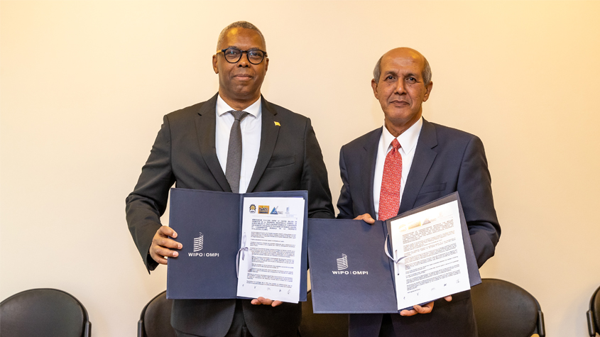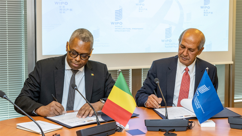 WIPO Deputy Director General Hasan Kleib (right) met on October 25, 2022, with H.E. Mr. Mamadou Henri Konate, the Ambassador of Mali to sign of a memorandum of understanding between WIPO, the Malian Center for the Promotion of Industrial Property (CEMAPI), the Malian Bureau of Copyright (BUMDA) and Université des Sciences juridiques et politiques de Bamako (USJPB).