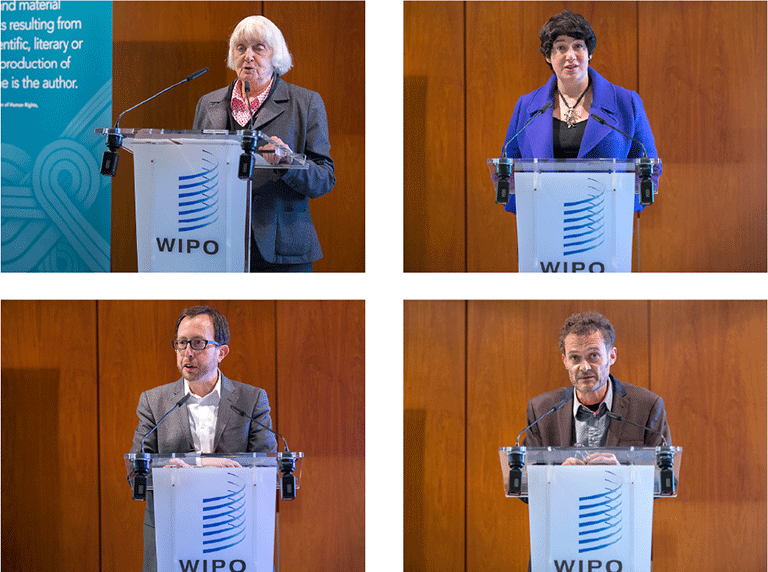 Various successful authors and artists, including (from left to right) Maureen Duffy (UK), Joanne Harris (UK), Robert Levine (USA) and Roberto Cabot (Brazil) attended the IAF’s launch event to support the new Forum and explain why copyright is important to them. (Photo: WIPO/Berrod)