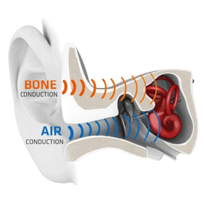 According to the Shokz website, bone conduction is the transmission of sound vibrations to the inner-ear (cochlea) bones of the skull. This allows a person to perceive sound, which goes directly to the inner ear without passing through the eardrum. In effect, bone conduction is a shortcut to hearing sound.