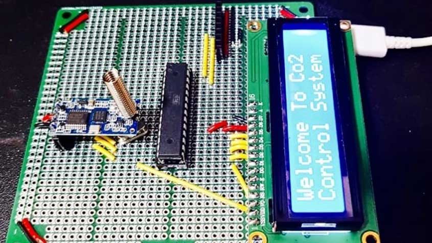 El sensor de CO2 incorporado en el dispositivo consta de dos partes: un componente portátil que envía una señal a un segundo componente, que consiste en un módulo transceptor inalámbrico HC 12 conectado a la bomba de aire para funcionar automáticamente cuando los niveles de CO2 superen las 600 ppm, y cerrarse cuando los niveles de CO2 caigan por debajo de las 600 ppm.
