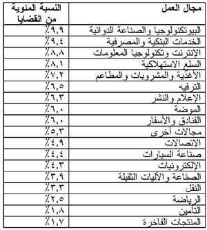 وكانت القطاعات الخمسة التي أودع فيها أكبر عدد من الشكاوى هي البيوتكنولوجيا والصناعة الدوائية، والخدمات البنكية والمصرفية، والإنترنت وتكنولوجيا المعلومات، والسلع الاستهلاكية، والأغذية، والمشروبات والمطاعم (الجدول 5). وظلت الشركات الدوائية في مقدمة مودعي الشكاوى مثل سنة 2007 نظرا إلى كثرة الحالات التي تقلب فيها الأسماء المحمية التي تسجل في المواقع الإلكترونية التي تبيع الأدوية أو توصّل إلى مواقع لبيع الأدوية على الإنترنت.