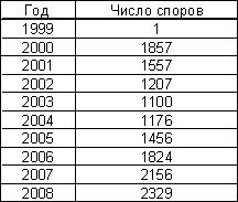 Общее число споров по доменным именам, принятых к рассмотрению ВОИС за год