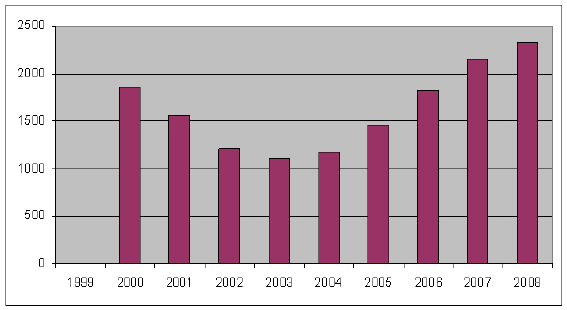 Число заявлений в ВОИС со стороны владельцев товарных знаков о случаях киберсквотинга продолжало увеличиваться в 2008 г., достигнув рекордного числа жалоб (2 329), поданных в рамках Единой политики урегулирования споров в области доменных имен (ЕПУС), представляющую собой быструю и рентабельную процедуру урегулирования споров, осуществляемую Центром по арбитражу и посредничеству ВОИС. Это отражает увеличение на 8% по сравнению с 2007 г. числа рассмотренных споров, касающихся родовых доменов верхнего уровня – рДВУ, и кодов стран доменов верхнего уровня – ксДВУ (см. Таблицу 1). Общее число рассмотренных ВОИС случаев в рамках ЕПУС со времени ее введения десять лет тому назад превысило 14 000. Для повышения эффективности и удовлетворения возрастающего спроса, ВОИС предложила в декабре 2008 г. «Инициативу эЕПУС» с целью превращения ЕПУС в безбумажную систему.