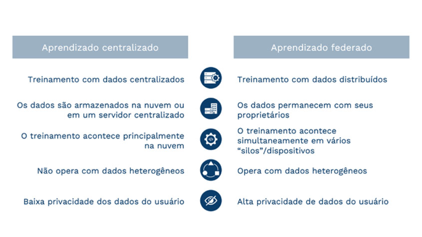 Uma solução para esse problema é o chamado “aprendizado federado”, em que os dados jamais saem do controle de seu proprietário. O treinamento dos algoritmos de aprendizado de máquina se dá localmente, sem que os dados sejam em momento algum compartilhados. Um exemplo simples é o uso de dados sensíveis, como os prontuários dos pacientes de um hospital, no desenvolvimento de um novo medicamento por um laboratório farmacêutico, sem que o hospital precise revelar essas informações. Em casos mais sofisticados, dados provenientes de várias fontes podem ser usados para treinar um mesmo algoritmo, com benefícios em termos do volume e da diversidade dos dados.