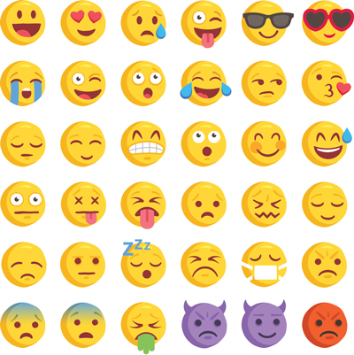 Emojis are small icons that people include in electronic communications to express an idea or an emotion. Emojis play a variety of communicative roles: they can function as a word substitute, a word complement (like the emphasis provided by an exclamation mark), an emotional signal, and more. Although most emojis are static images, they can be animated. Emojis were preceded by emoticons – icons comprised of keyboard characters such as the “smiley,” i.e., the keyboard characters :-). Emojis are subject to a wider range of depictions than emoticons because they can be literally anything, while emoticons are limited to keyboard characters.