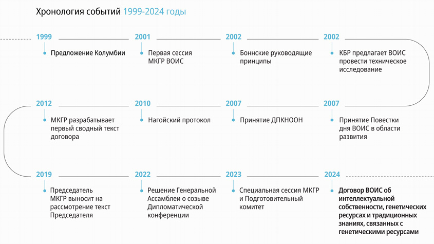 Ключевая идея нового договора — включение требования об обязательном раскрытии в патентное право в случаях, когда изобретение основано на ГР и/или ТЗ, связанных с ГР, — уходит корнями в обсуждения о связи между ИС, биотехнологиями и сохранением биоразнообразия, которые начались в конце 80-х – начале 90-х годов прошлого века.