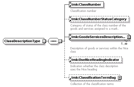 tmk:ClassNumber tmk:ClassNumberStatusCategory tmk:GoodsServicesDescriptionText tmk:UseNiceHeadingIndicator tmk:ClassificationTermBag |