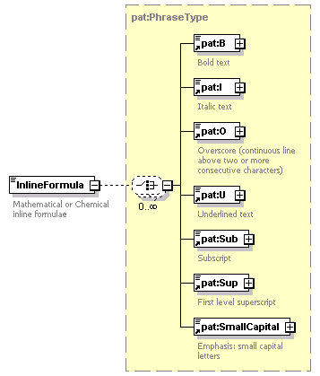 | source | <xsd:element name="InlineFormula" type="pat:PhraseType"> <xsd:annotation>