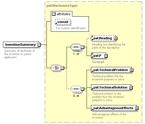 | source | <xsd:element name="InventionSummary" type="pat:DisclosureType"> <xsd:annotation>