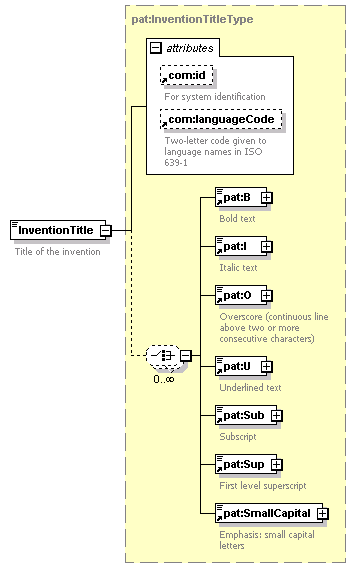 | source | <xsd:element name="InventionTitle" type="pat:InventionTitleType"> <xsd:annotation>
