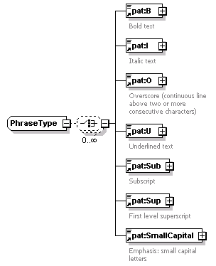 <xsd:complexType name="PhraseType" mixed="true"> <xsd:choice minOccurs="0" maxOccurs="unbounded">