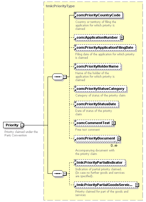 | children | com:PriorityCountryCode com:ApplicationNumber com:PriorityApplicationFilingDate com:PriorityHolderName com:PriorityStatusCategory com:PriorityStatusDate com:CommentText com:PriorityDocument tmk:PriorityPartialIndicator tmk:PriorityPartialGoodsServices | ||||