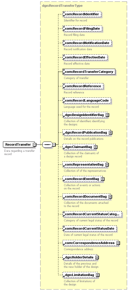 | children | com:RecordIdentifier com:RecordFilingDate com:RecordNotificationDate com:RecordEffectiveDate com:RecordTransferCategory com:RecordReference com:RecordLanguageCode dgn:DesignIdentifierBag dgn:RecordPublicationBag dgn:ClaimantBag com:RepresentativeBag com:RecordEventBag com:RecordDocumentBag com:RecordCurrentStatusCategory com:RecordCurrentStatusDate com:CorrespondenceAddress dgn:HolderDetails dgn:LimitationBag | ||||