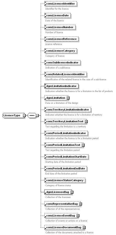 <xsd:element ref="com:LicenceDocumentBag" minOccurs="0"> </xsd:element> |