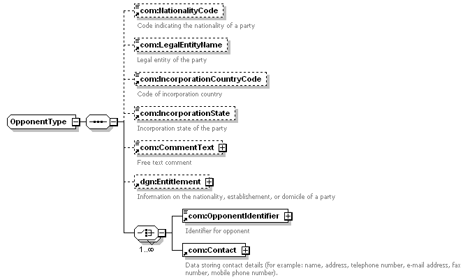 <xsd:choice maxOccurs="unbounded"> <xsd:element ref="com:OpponentIdentifier"/> <xsd:element ref="com:Contact"/> </xsd:choice> |