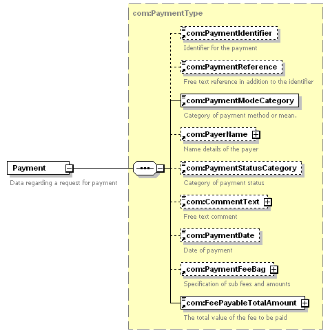 | children | com:PaymentIdentifier com:PaymentReference com:PaymentModeCategory com:PayerName com:PaymentStatusCategory com:CommentText com:PaymentDate com:PaymentFeeBag com:FeePayableTotalAmount | ||||