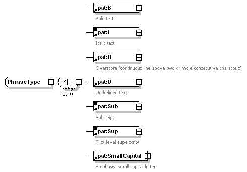 <xsd:complexType name="PhraseType" mixed="true"> <xsd:choice minOccurs="0" maxOccurs="unbounded">