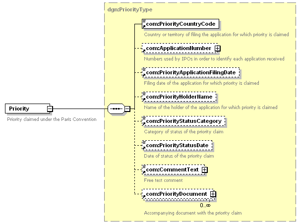 | children | com:PriorityCountryCode com:ApplicationNumber com:PriorityApplicationFilingDate com:PriorityHolderName com:PriorityStatusCategory com:PriorityStatusDate com:CommentText com:PriorityDocument | ||||