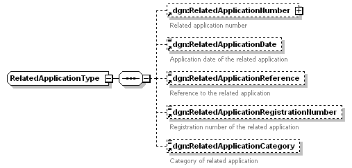 dgn:RelatedApplicationNumber dgn:RelatedApplicationDate dgn:RelatedApplicationReference dgn:RelatedApplicationRegistrationNumber dgn:RelatedApplicationCategory |
