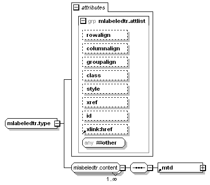 | source | <xsd:complexType name="mlabeledtr.type"> <xsd:group ref="mlabeledtr.content" minOccurs="1" maxOccurs="unbounded"/> <xsd:attributeGroup ref="mlabeledtr.attlist"/> </xsd:complexType> |