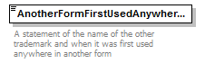 <xsd:documentation> A statement of the name of the other trademark and when it was first used anywhere in another form </xsd:documentation> |