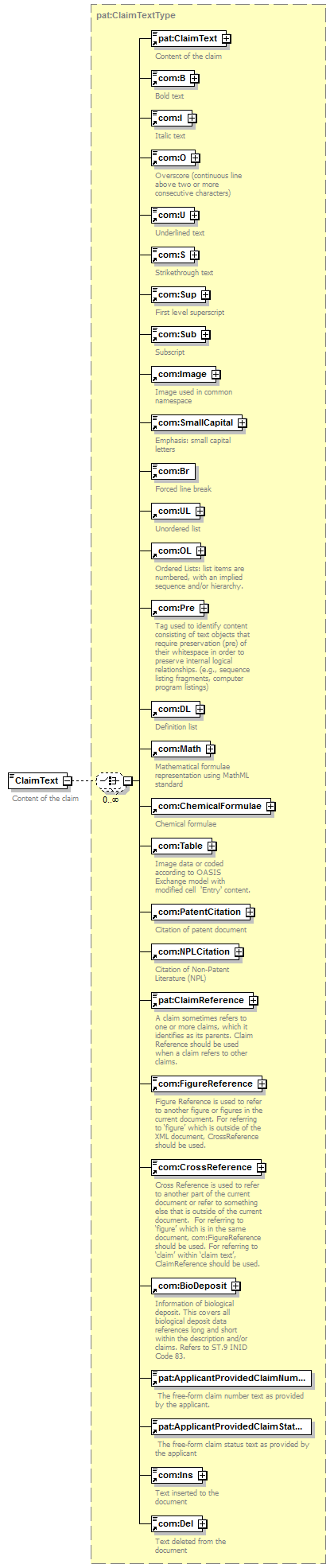 <xsd:element name="ClaimText" type="pat:ClaimTextType"> <xsd:annotation>