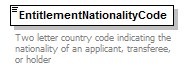 <xsd:documentation> Two letter country code indicating the nationality of an applicant, transferee, or holder </xsd:documentation> |