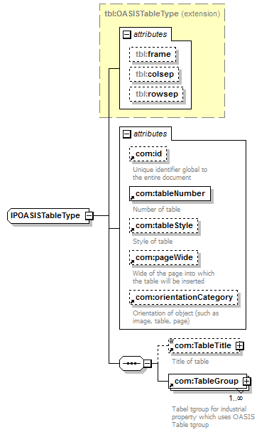 </xsd:sequence> <xsd:attribute ref="com:id"/> <xsd:attribute ref="com:tableNumber" use="required"/> <xsd:attribute ref="com:tableStyle"/> <xsd:attribute ref="com:pageWide"/> <xsd:attribute ref="com:orientationCategory"/> </xsd:extension> |
