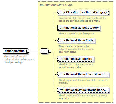 tmk:ClassNumberStatusCategory tmk:NationalStatusCategory tmk:NationalStatusCode tmk:NationalStatusDate tmk:NationalStatusInternalDescriptionText tmk:NationalStatusExternalDescriptionText |