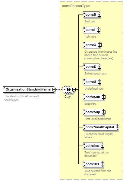 <xsd:element name="OrganizationStandardName" type="com:PhraseType"> <xsd:annotation>