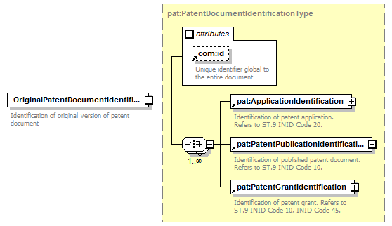 pat:ApplicationIdentification pat:PatentPublicationIdentification pat:PatentGrantIdentification |