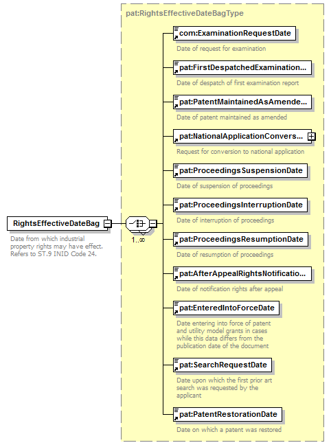 com:ExaminationRequestDate pat:FirstDespatchedExaminationReportDate pat:PatentMaintainedAsAmendedDate pat:NationalApplicationConversionRequest pat:ProceedingsSuspensionDate pat:ProceedingsInterruptionDate pat:ProceedingsResumptionDate pat:AfterAppealRightsNotificationDate pat:EnteredIntoForceDate pat:SearchRequestDate pat:PatentRestorationDate |