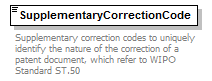 <xsd:documentation> Supplementary correction codes to uniquely identify the nature of the correction of a patent document, which refer to WIPO Standard ST.50 </xsd:documentation> |