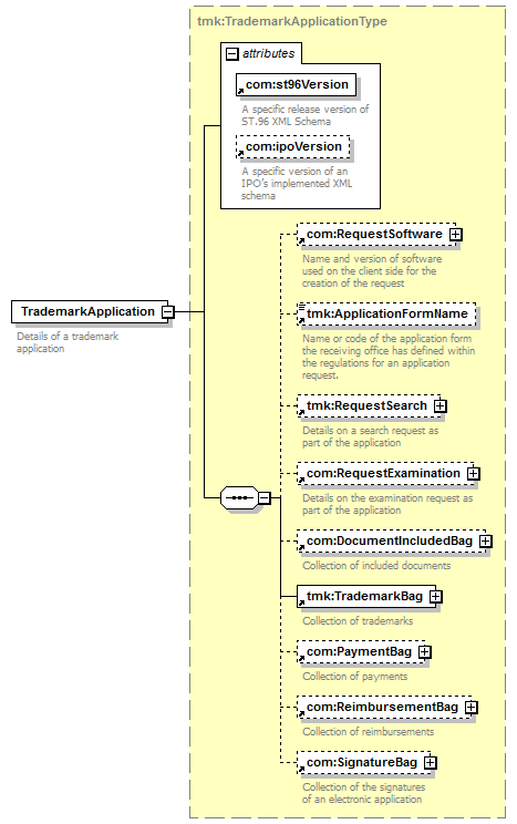 com:RequestSoftware tmk:ApplicationFormName tmk:RequestSearch com:RequestExamination com:DocumentIncludedBag tmk:TrademarkBag com:PaymentBag com:ReimbursementBag com:SignatureBag |