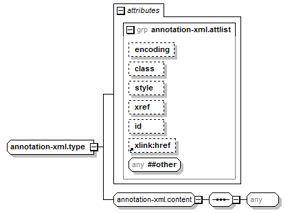 | source | <xsd:complexType name="annotation-xml.type"> <xsd:group ref="annotation-xml.content"/> <xsd:attributeGroup ref="annotation-xml.attlist"/> </xsd:complexType> |