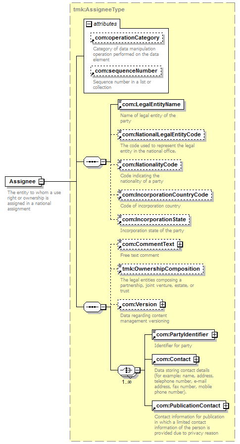 com:LegalEntityName com:NationalLegalEntityCode com:NationalityCode com:IncorporationCountryCode com:IncorporationState com:CommentText tmk:OwnershipComposition com:Version com:PartyIdentifier com:Contact com:PublicationContact |