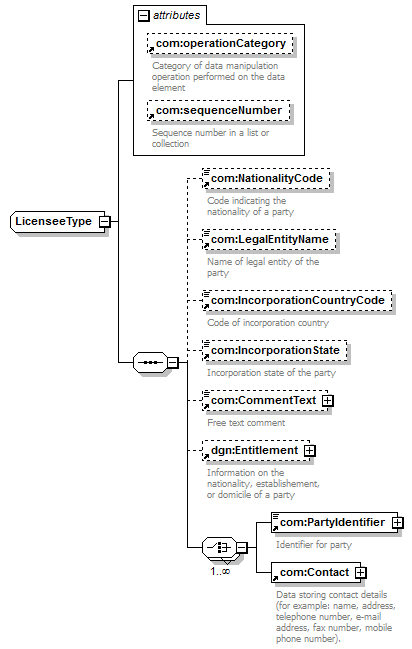 com:NationalityCode com:LegalEntityName com:IncorporationCountryCode com:IncorporationState com:CommentText dgn:Entitlement com:PartyIdentifier com:Contact |