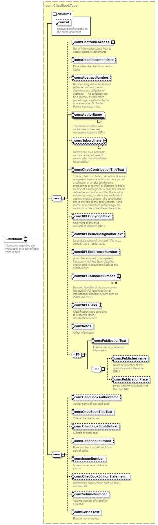 | children | com:ElectronicAccess com:CitedDocumentDate com:AbstractNumber com:AuthorName com:Subordinate com:CitedContributionTitleText com:NPLCopyrightText com:NPLIssueDesignationText com:NPLReferenceNumber com:NPLStandardNumber com:NPLClass com:Notes com:PublicationText com:PublisherName com:PublicationPlace com:CitedBookAuthorName com:CitedBookTitleText com:CitedBookSubtitleText com:CitedBookNumber com:IssueNumber com:CitedBookEditionStatementText com:VolumeNumber com:SeriesText | ||||||||||||||||||||||