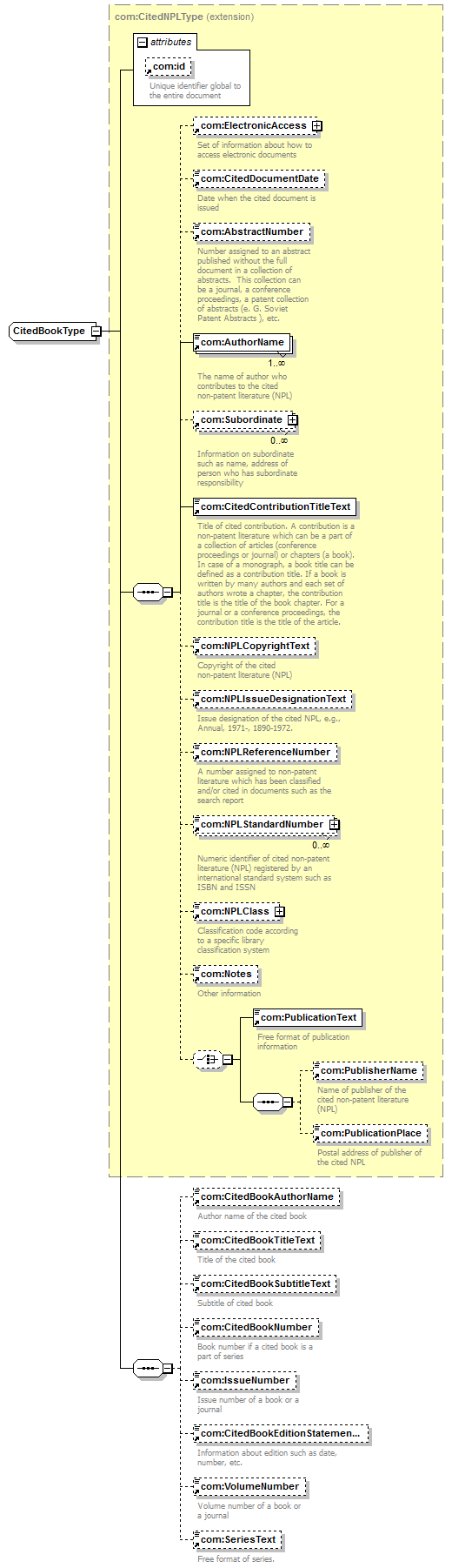com:ElectronicAccess com:CitedDocumentDate com:AbstractNumber com:AuthorName com:Subordinate com:CitedContributionTitleText com:NPLCopyrightText com:NPLIssueDesignationText com:NPLReferenceNumber com:NPLStandardNumber com:NPLClass com:Notes com:PublicationText com:PublisherName com:PublicationPlace com:CitedBookAuthorName com:CitedBookTitleText com:CitedBookSubtitleText com:CitedBookNumber com:IssueNumber com:CitedBookEditionStatementText com:VolumeNumber com:SeriesText |